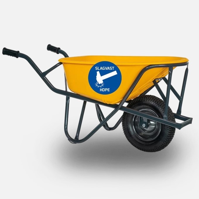 Bijzonderheden: slagvaste HDPE bak - slijtsloffen - foam handvattenHUMMER: Degelijk Hollands laswerk sinds 1948