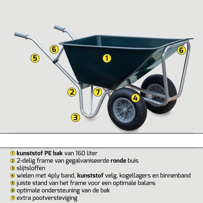 HUMMER Semi-PRO volumekruiwagen 160 liter 2 wiel