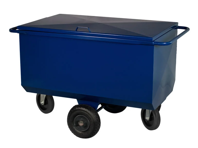 Deze professionele metalen voerwagen met deksel en gasveer is gecoat in blauwe kleur RAL 5003. De bakinhoud van 275 liter (100x60x50 cm) zorgt ervoor dat er veel voer meegenomen kan worden zodat u het hoogste gemak ervaart. De wagen is voorzien van handgrepen en 2 massieve zwenkwielen, de middelste banden zijn vast wat ervoor zorgt dat de wagen heel wendbaar is, deze 2 wielen van 300x4 4ply kwaliteit met metalen velg zijn voorzien kogellagers en een binnenband.