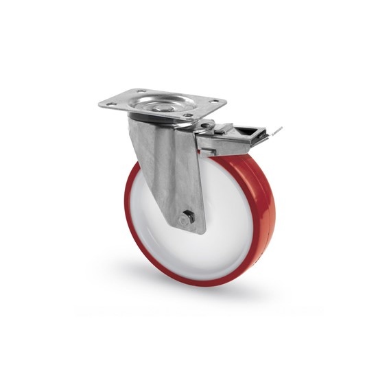 Livellö zwenkwiel RVS 80 nylon NOC rood plaatbevestiging met rem