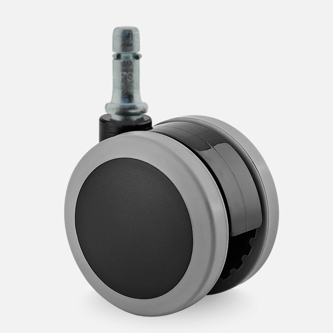 Materiaal wiel: Zacht, Polyurethaan Materiaal behuizing: Polyamide Vloersoorten: Parket, laminaat, plavuizen enz. Bevestiging: Stift 11x19mm Bouwhoogte: 80mm Diameter wiel: 75mm Wielbreedte totaal: 64mm Draagvermogen: 160kg Soort lager: Glijlager -