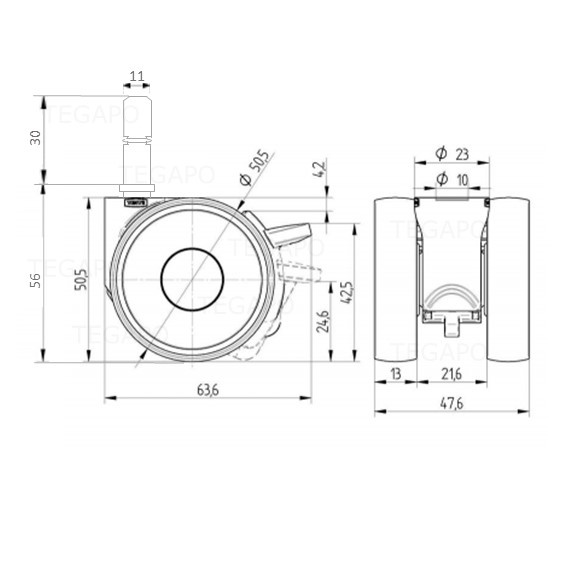 PAPU LOW wiel 50mm stift 11mm (30) met rem