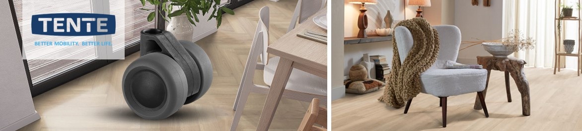 Dit TENTE wiel is voorzien van het unieke TENTE Prene loopvlak. Dit is een thermoplastisch rubber die alleen maar geproduceerd wordt door TENTE. Dit materiaal is soft en tegelijk heel slijtvast, ook dit loopvlak werkt mee aan een lage rolweerstand. Ook is dit product vrij van weekmakers wat belangrijk is voor uw gezondheid.