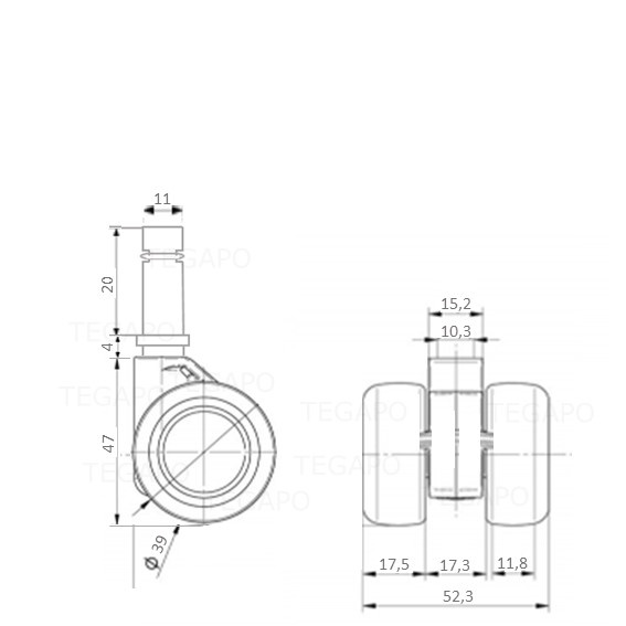 De bouwhoogte is de totale hoogte van het wiel. Dit is de hoogte vanaf de vloer tot aan het object waar het wiel onder komt. Als u bijvoorbeeld dit wiel onder een stoel plaatst dan is de bouwhoogte de hoogte vanaf de vloer tot onderkant stoelpoot.