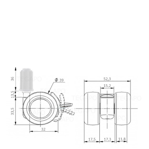 PATPLOW wiel 39mm plug 15mm met rem