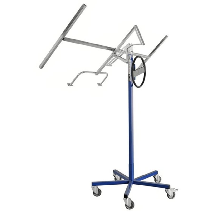 Plaatlift voor montage van platen in een schuin of horizontaal plafond. Stevige en stabiele constructie die het werk eenvoudig en veilig maakt op iedere ondergrond. Met de draaihendel kunt u makkelijk de plaat tegen het plafond aandrukken om hem daarna te monteren. Ideaal voor verschillende plafondplaten zoals gips en hout.