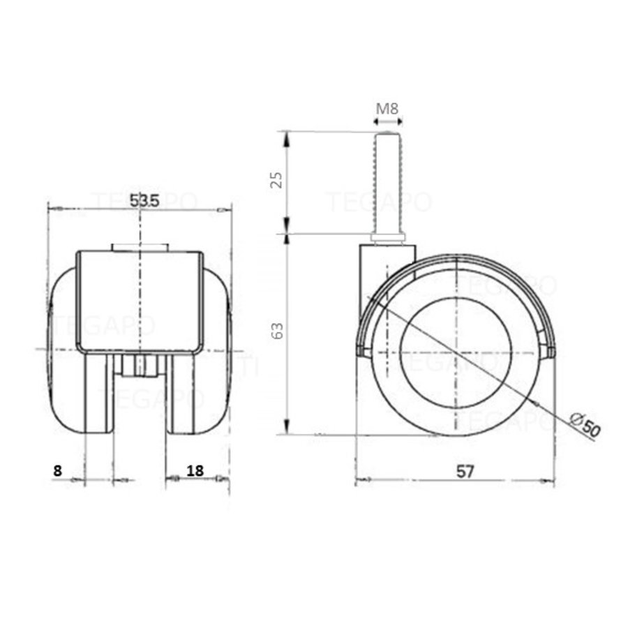 De bouwhoogte is de totale hoogte van het wiel. Dit is de hoogte vanaf de vloer tot aan het object waar het wiel onder komt. Als u bijvoorbeeld dit wiel onder een stoel plaatst dan is de bouwhoogte de hoogte vanaf de vloer tot onderkant stoelpoot.