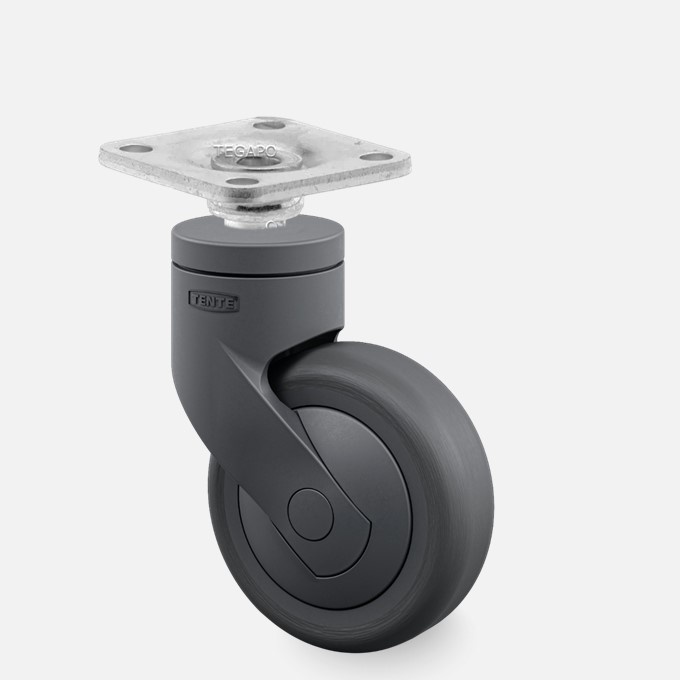Wieldiameter 75 mm Bouwhoogte 112 mm Draagvermogen 150 KG Bijgeleverde bevestiging Plaat 42x42mm Wiel lager Precisiekogellager, afdekkap voor hygiëne/vuilopbouw Band materiaal Zacht, Tenteprene thermoplastisch rubber Band hardheid Shore A 87 Band breedte 25 mm Krans diameter 44 mm Velg materiaal Hoogwaardig synthetisch materiaal Temperatuur -10/ +40°C Zwenkradius 64.5 mm Eigen gewicht 0,154 KG Keuringsnorm EN 12530 Garantie 5 jaar -