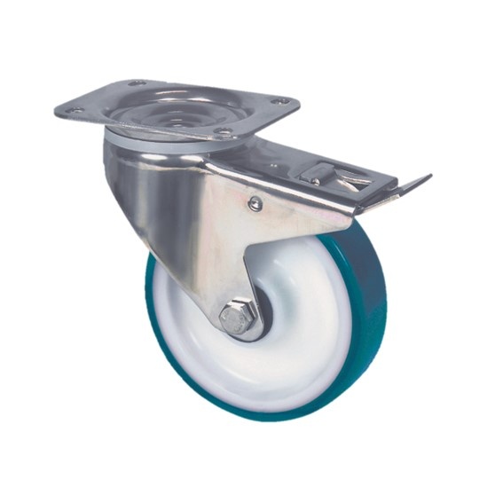 TENTE Zwenkwiel RVS 100 nylon NOC blauw plaatbevestiging met rem
