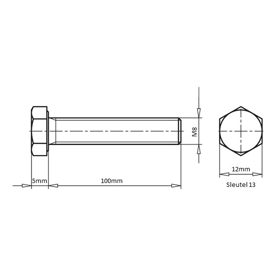 Zeskanttapbout M8x100