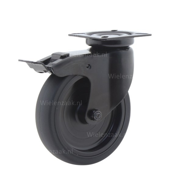 TENTE zwenkwiel elastisch rubber 100 3KO plaat met rem