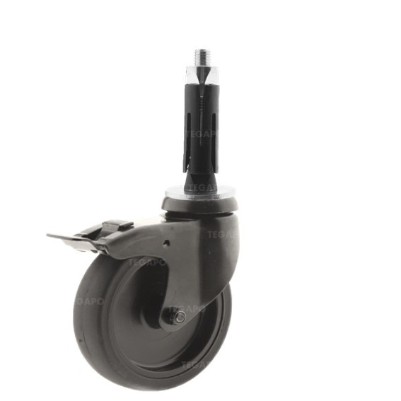 Dit wiel is geschikt voor het rijden op harde vloeren zoals beton, tegels, natuursteen enz. Uitermate geschikt voor zowel binnen als buiten. Deze zijn voorzien van een kunststof uitzetschroef bevestiging: Geschikt om de wielen te bevestigen en te kunnen klemmen in een inwendige buismaat van 21,5 tot en met 24mm. Door middel van een inbussleutel kan deze van de onderzijde van het zwenkwiel (bij het kransgedeelte) opgedraaid worden om het kunststof gedeelte te klemmen in de buis. Deze kunt u stevig aandraaien, zodat het kunststof gedeelte tegen de binnenwand van de ronde buis zal klemmen en het zwenkwiel een sterke montagebevestiging krijgt.