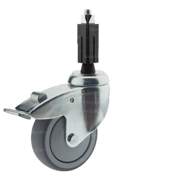 Dit wiel is geschikt voor het rijden op harde vloeren zoals beton, tegels, natuursteen enz. Uitermate geschikt voor zowel binnen als buiten. Deze zijn voorzien van een kunststof uitzetschroef bevestiging: Geschikt om de wielen te bevestigen en te kunnen klemmen in een inwendige kokermaat van 21,5 tot en met 24mm. Door middel van een inbussleutel kan deze van de onderzijde van het zwenkwiel (bij het kransgedeelte) opgedraaid worden om het kunststof gedeelte te klemmen in de koker. Deze kunt u stevig aandraaien, zodat het kunststof gedeelte tegen de binnenwand van de koker zal klemmen en het zwenkwiel een sterke montagebevestiging krijgt.