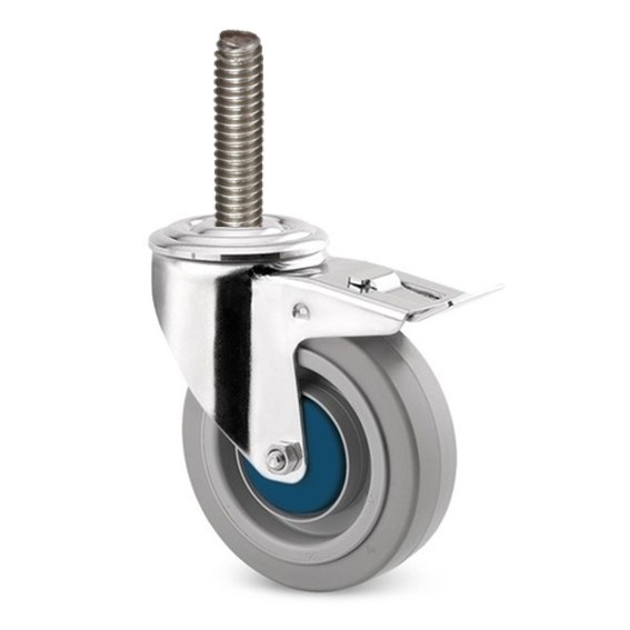 Zwenkwiel RVS 100 elastisch rubber KO M10x65 met rem