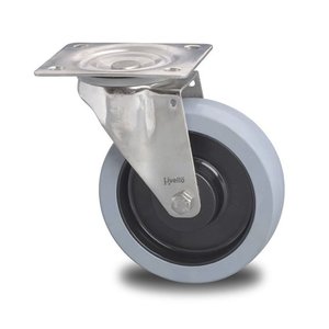 Livellö zwenkwiel RVS 125 elastisch rubber plaat met rem